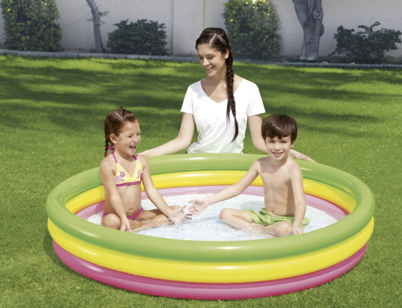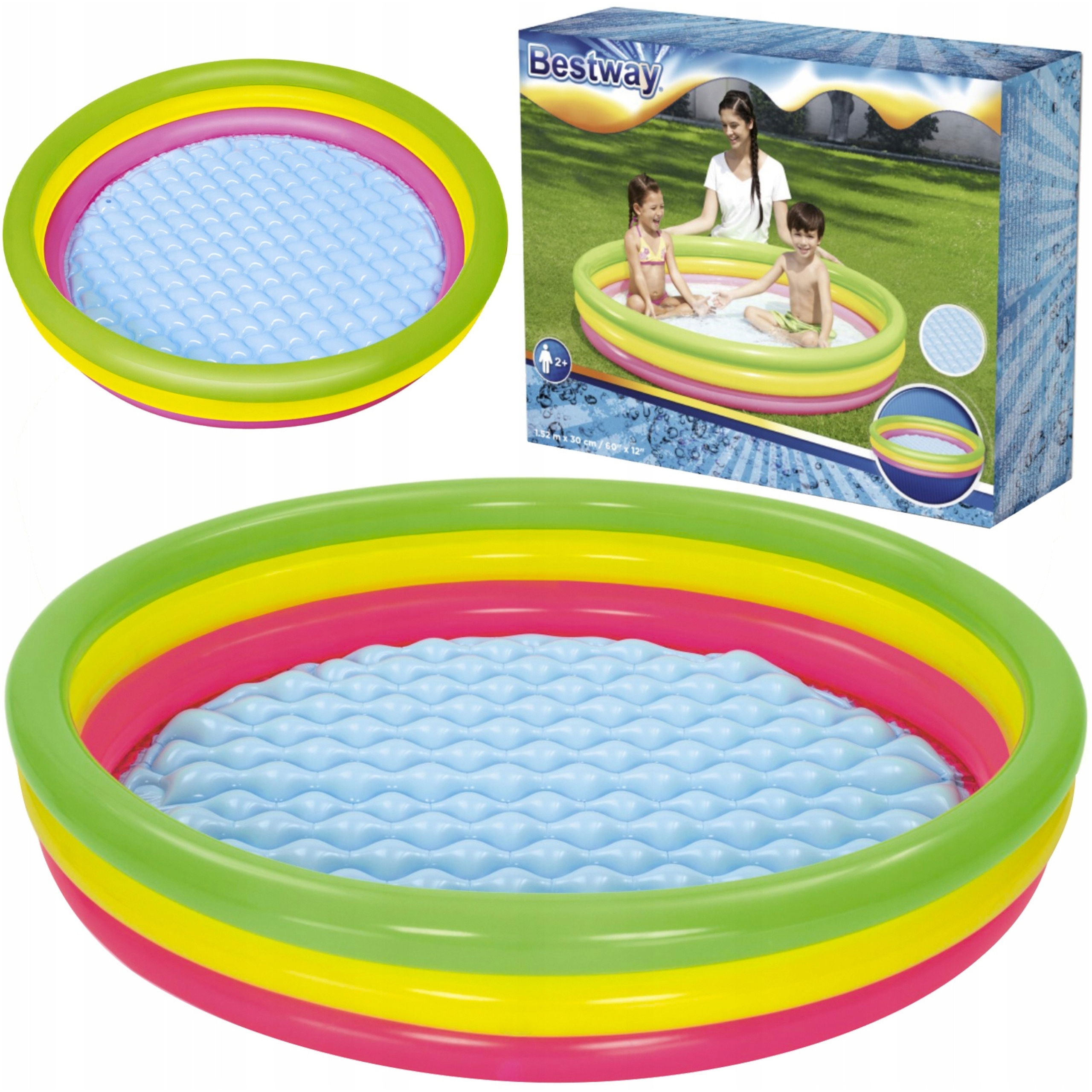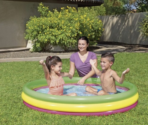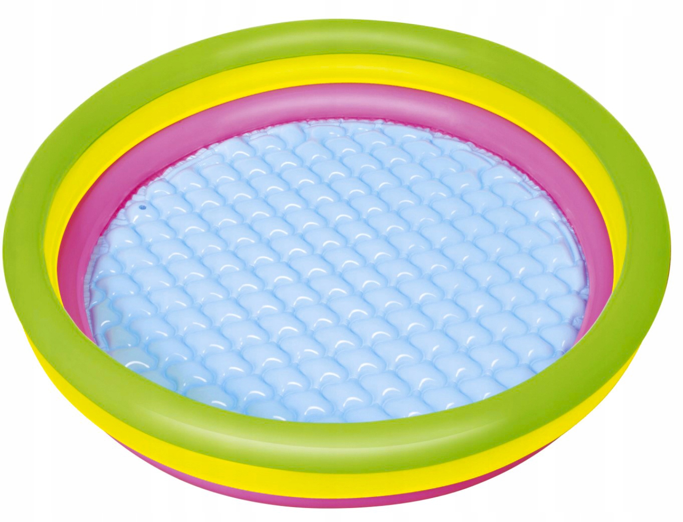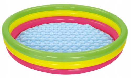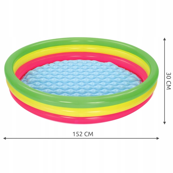 Ten barwny basen ożywia zmysły trzema różnorodnymi obręczami, które kuszą do wesołego tańca w wodzie.