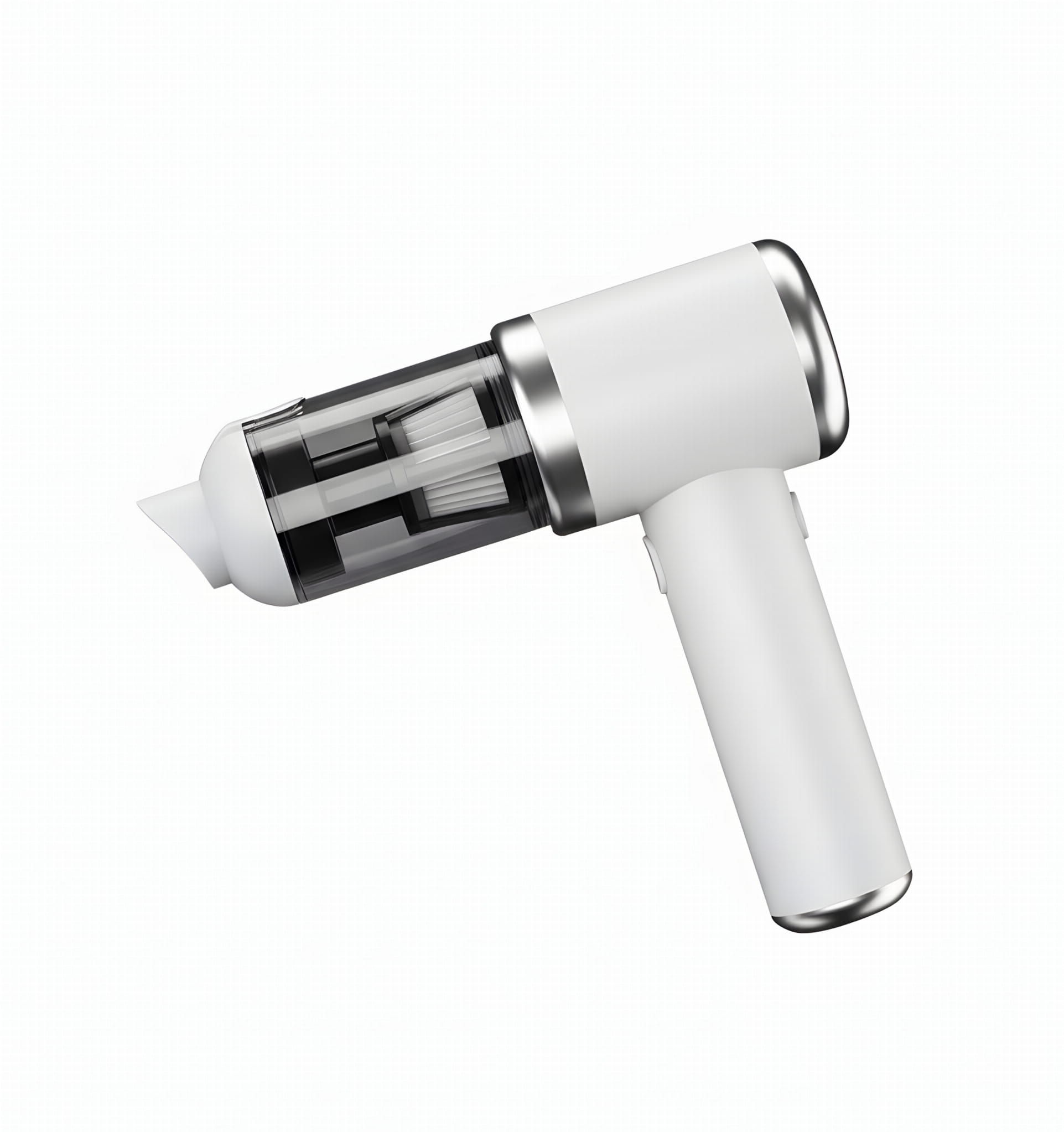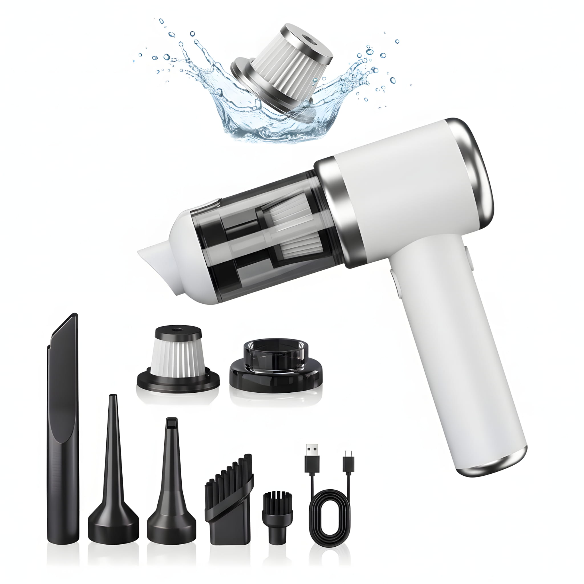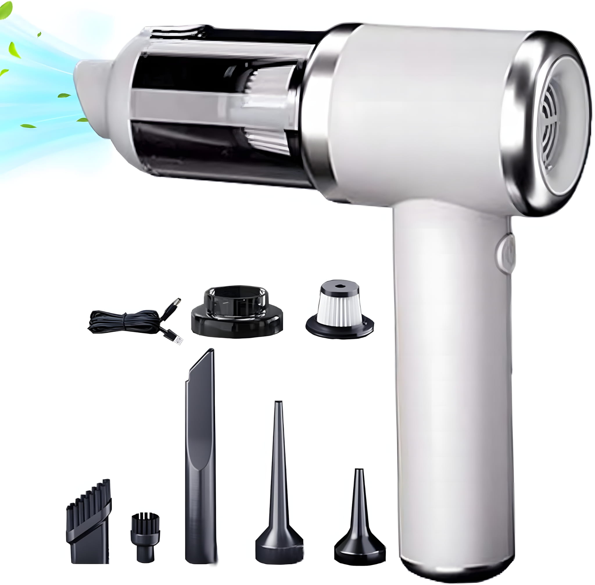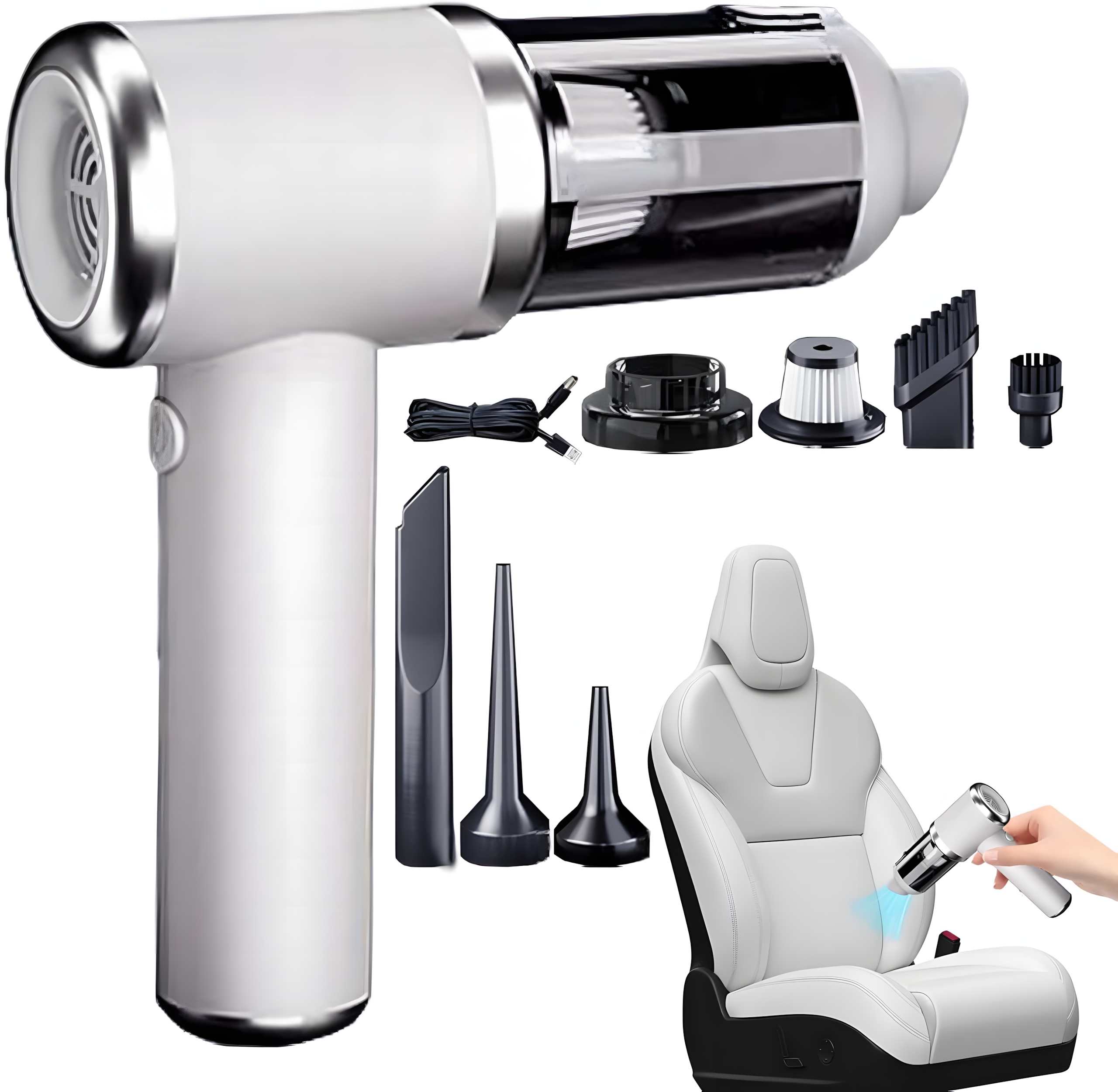 Bezprzewodowy odkurzacz samochodowy 2w1 z funkcją dmuchawy filtr HEPA moc ssania 5500Pa USB-C zestaw akcesoriów biało srebrny idealny do auta domu i podróży