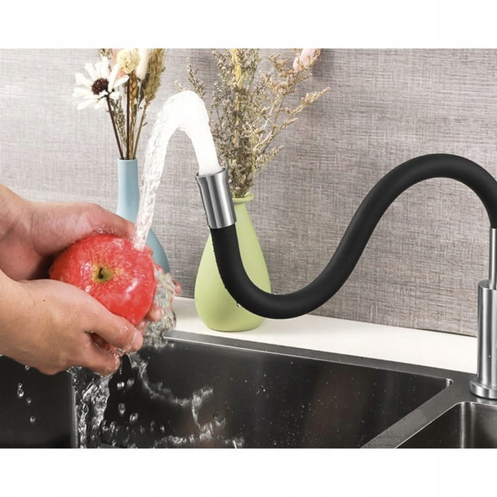 ✅ Giętka konstrukcja umożliwia dowolne ustawienie strumienia wody, co znacznie ułatwia czyszczenie naczyń oraz płukanie produktów spożywczych. Dzięki pełnemu obrotowi 360° bez trudu dotrzesz do każdego zakamarka zlewu – nawet tego dwukomorowego!