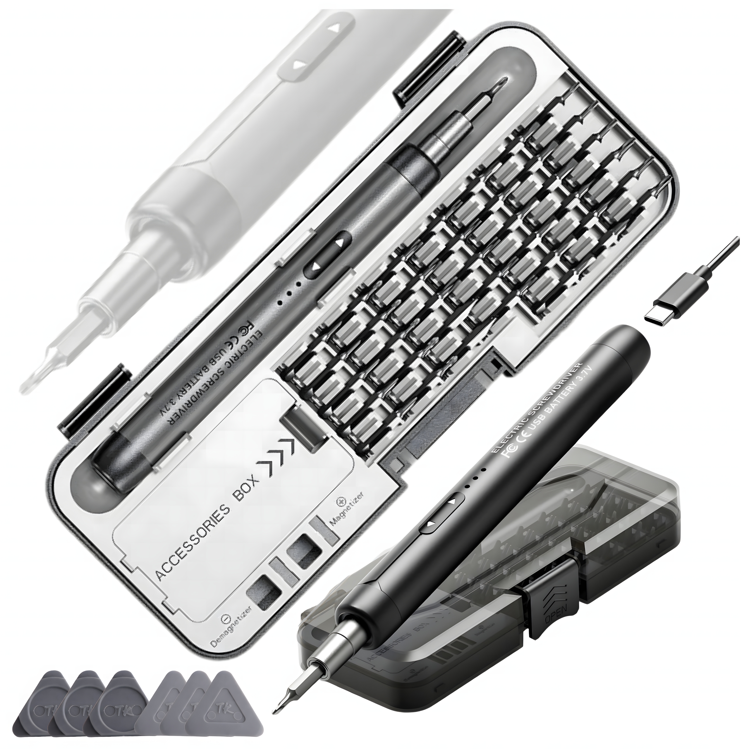 Elektryczny śrubokręt precyzyjny z akumulatorem 3.7V, 38 bitów USB-C magnetyzer demagnetyzer etui zestaw do naprawy telefonów elektroniki i AGD