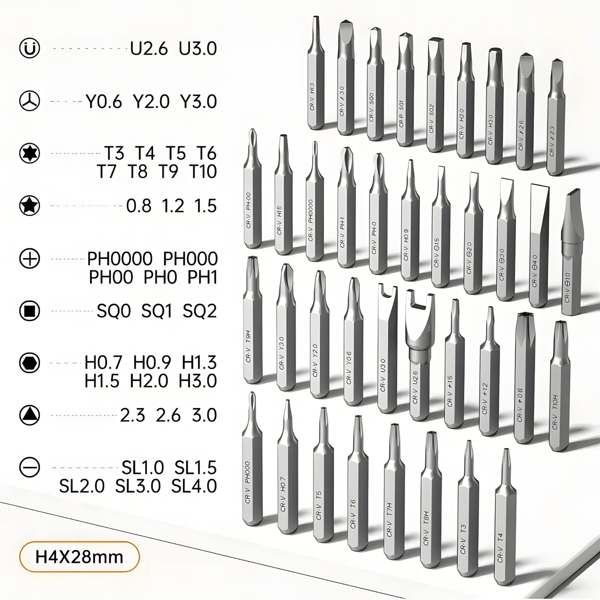 ✨ Bity w zestawie: 38 końcówek 28 mm (typ H4)