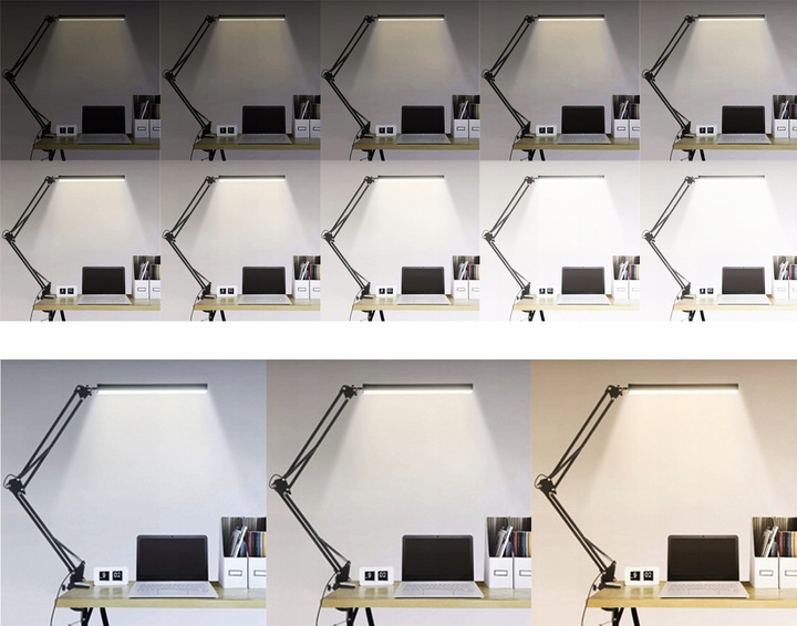 Przy wyborze sugerowałem się ilością dobrych ocen ale rozpatrywałem też model lampki z dwoma elementami świecącymi tyle że droższy i z mniejszą liczbą ocen ale też dobrych. Martwiłem się że ta ledowa lampka nie będzie świecić tak jasno jak jarzeniowa - 836 lum. Ale jednak jasność okazały się co najmniej tak dobre jak poprzednia, a wykonanie w tej cenie nie pozostawia pola do krytyki, jest naprawdę ładne, solidne, z aluminium, wszędzie motylki z plastiku a nie gołe śruby, nawet sprężyny są pomalowane na czarno w kolorze lampy. Uchwyt trzyma mocno, nie wygina się i jest dodatkowa śruba dociskająca w osi X, która blokuje wypadnięcie stopy lampy z uchwytu. Zasięg ramienia jest prawie największy z dostępnych. Naprawdę solidny produkt i polecam gorąco jeżeli ktoś się boi, że to bubel lub słabo świeci. Dodatkowy bajer to zmiana jasności i barwy z pilota w kablu.