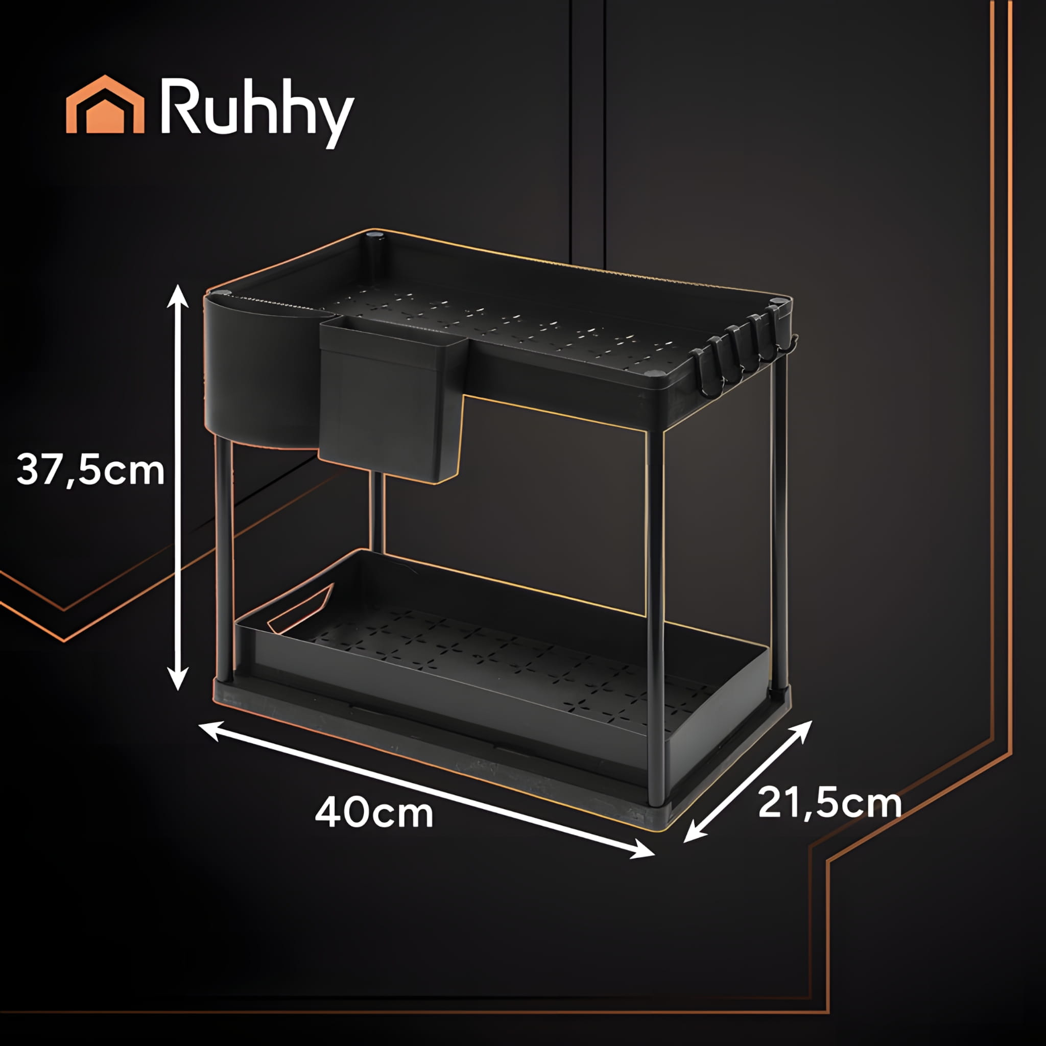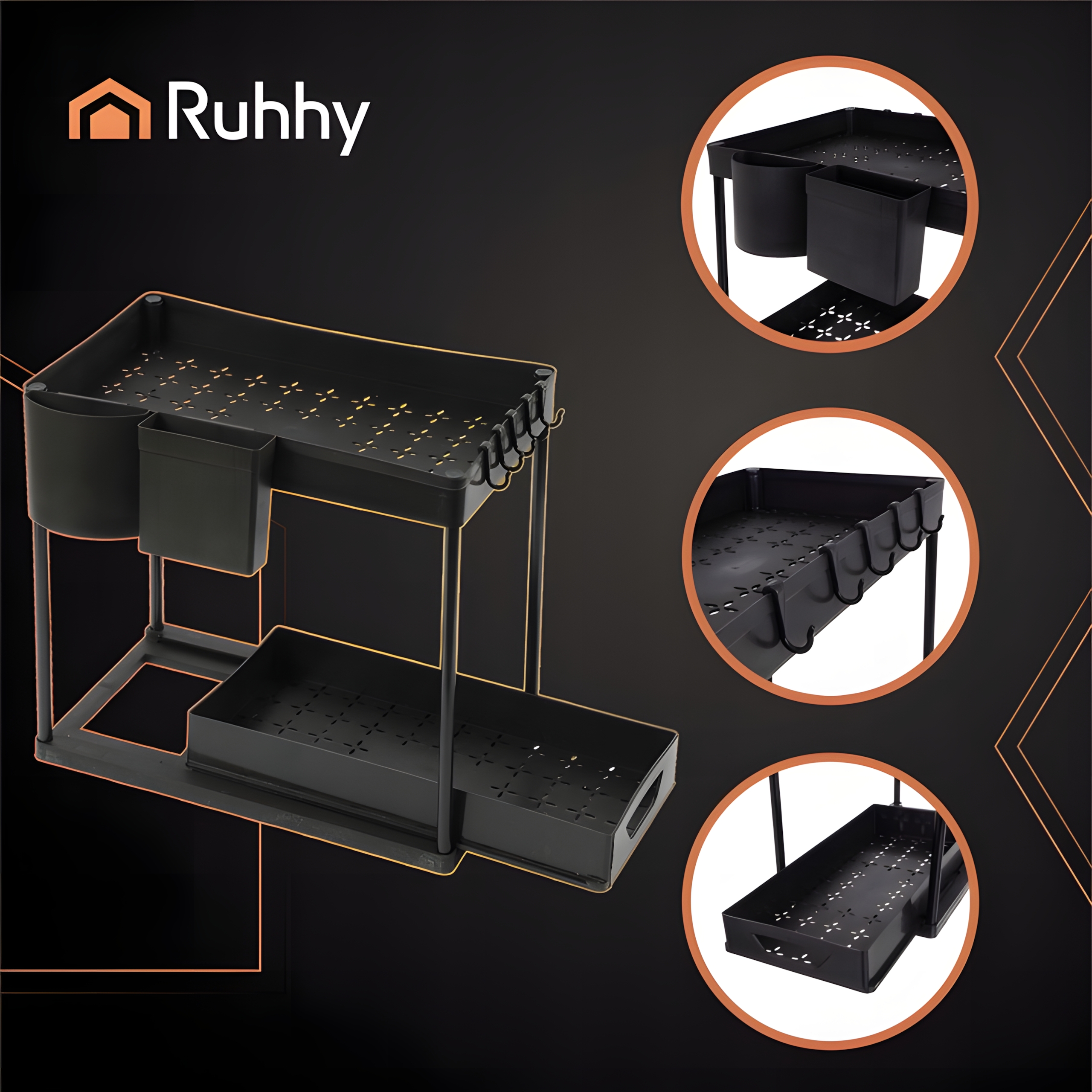 Organizer Pod Zlew 2 Poziomowy Wysuwany Czarny – Regał Kuchenny Półka