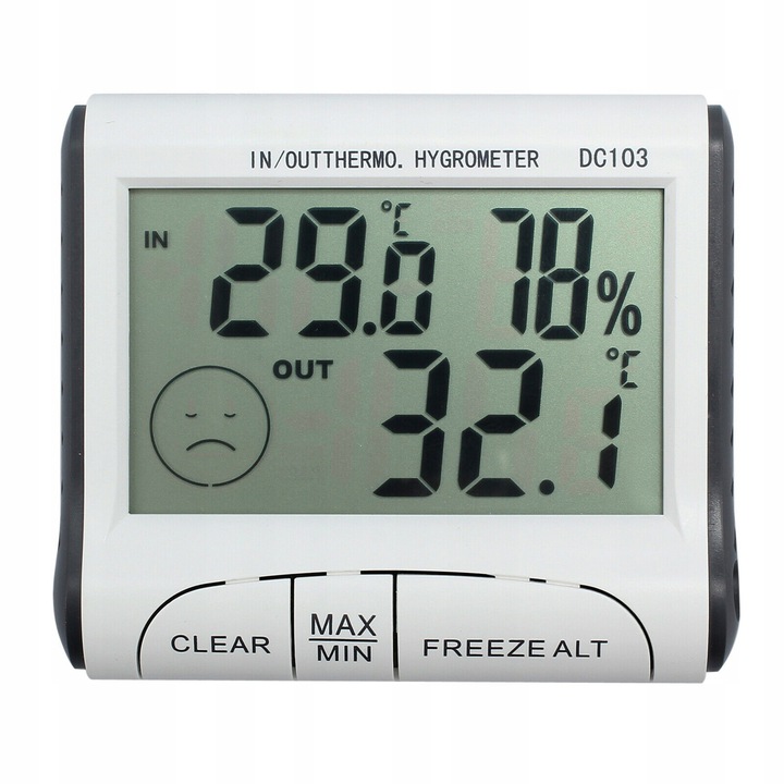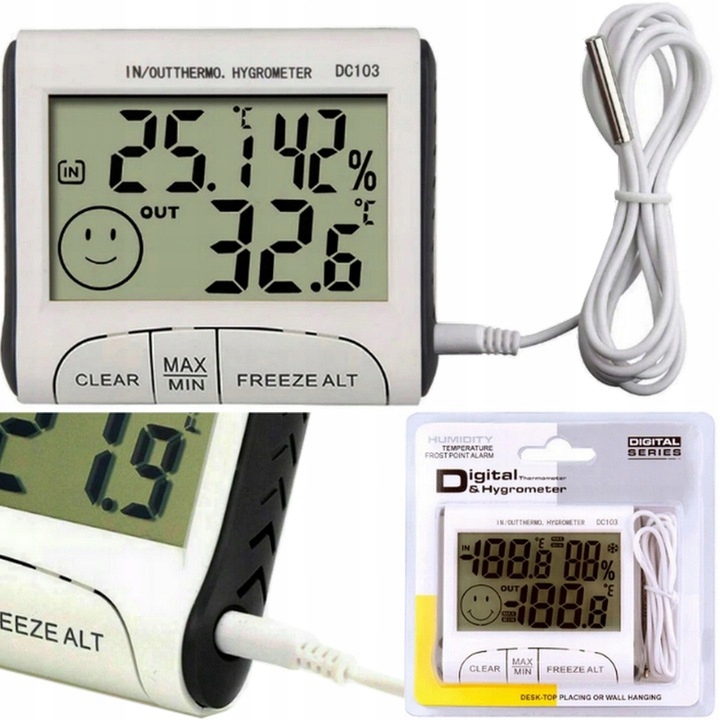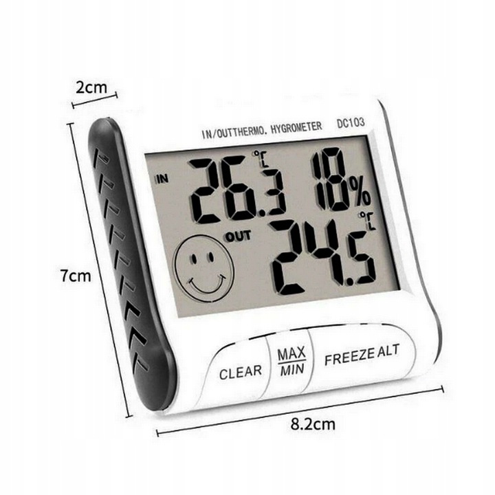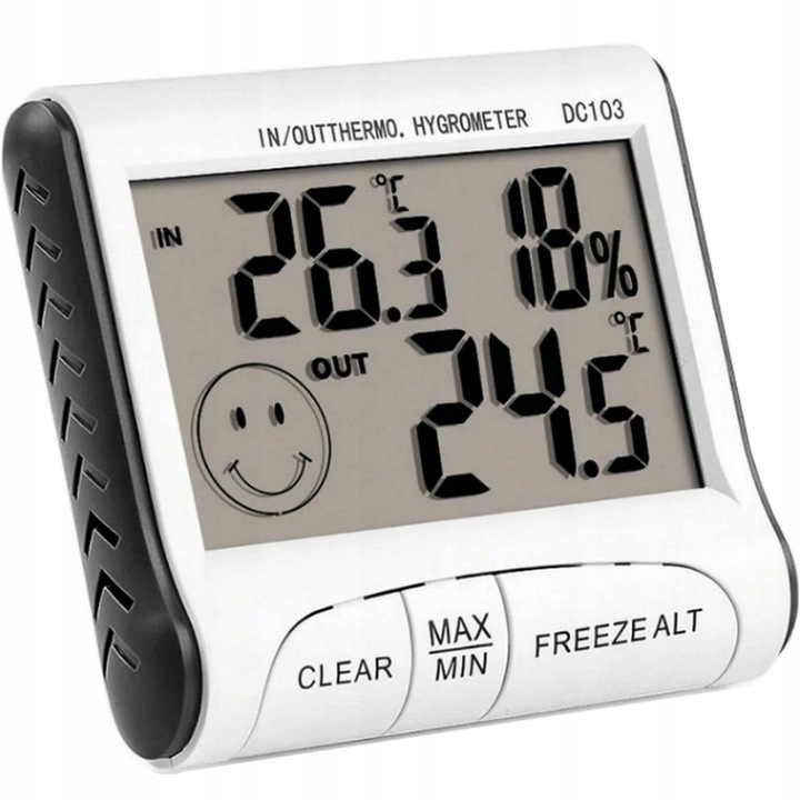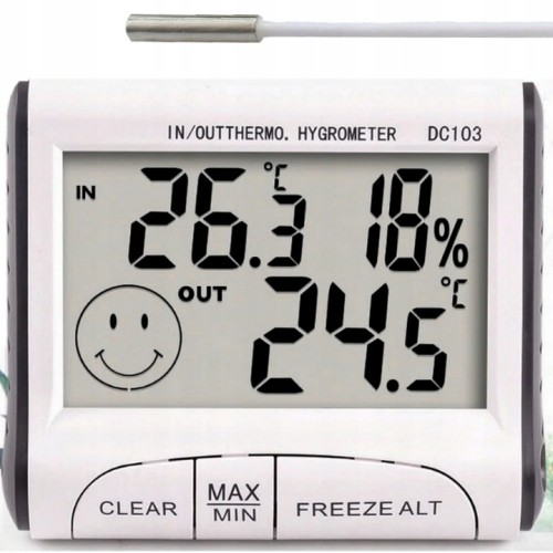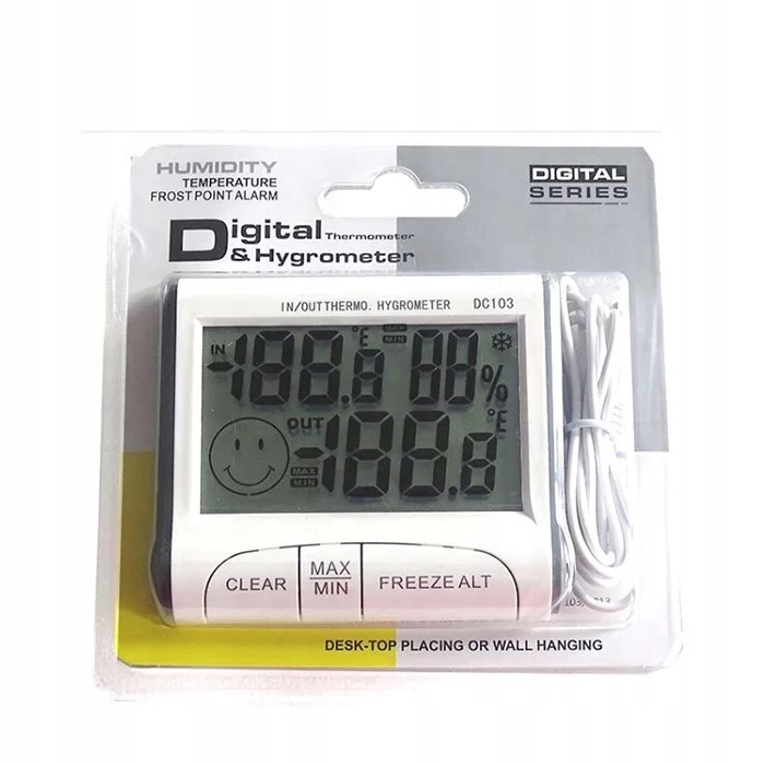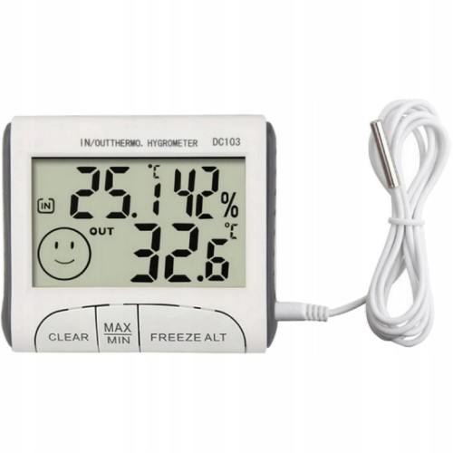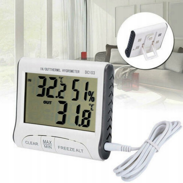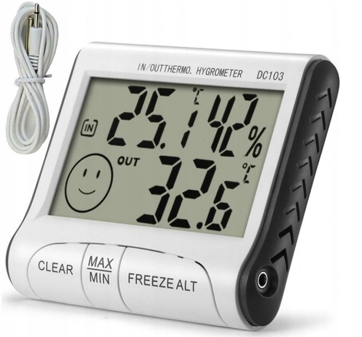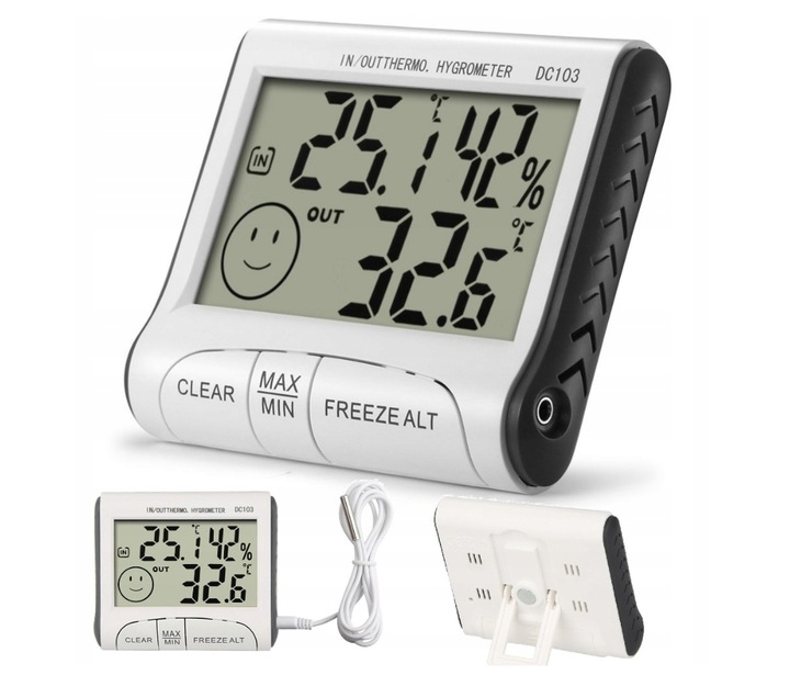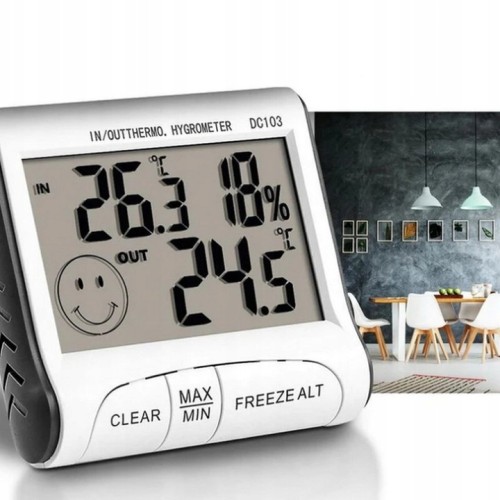 Higrometr to dokładne urządzenie służące do wykonywania pomiarów wilgotności powietrza w pomieszczeniu oraz temperatury w pomieszczeniu i na dworze.