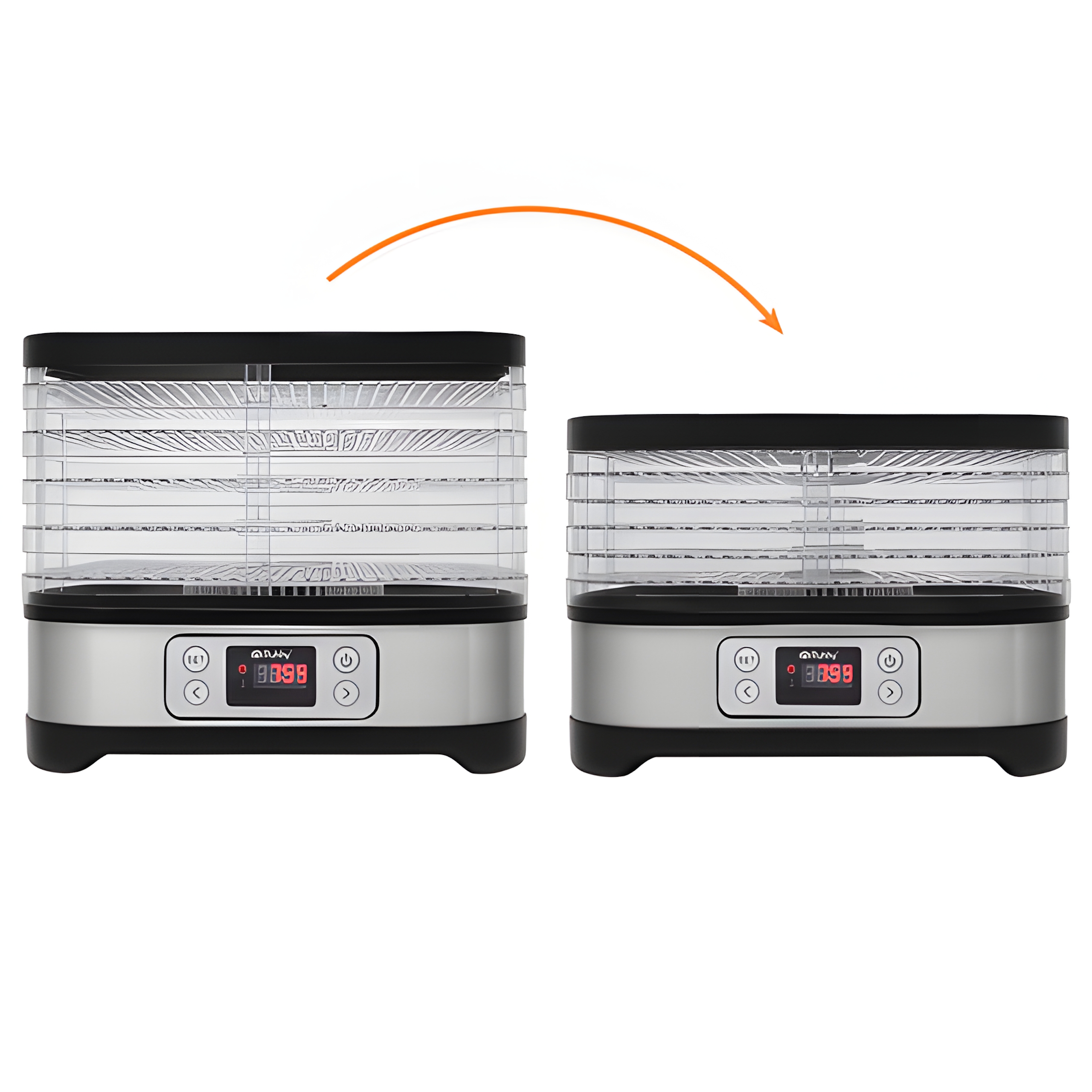 ✅ Dzięki różnym rodzajom tacek możesz dopasować sposób suszenia do produktu – siatkowe idealne do ziół, a maty nieprzywierające do owoców i delikatnych składników. To oznacza większą swobodę i brak ograniczeń w domowej spiżarni.