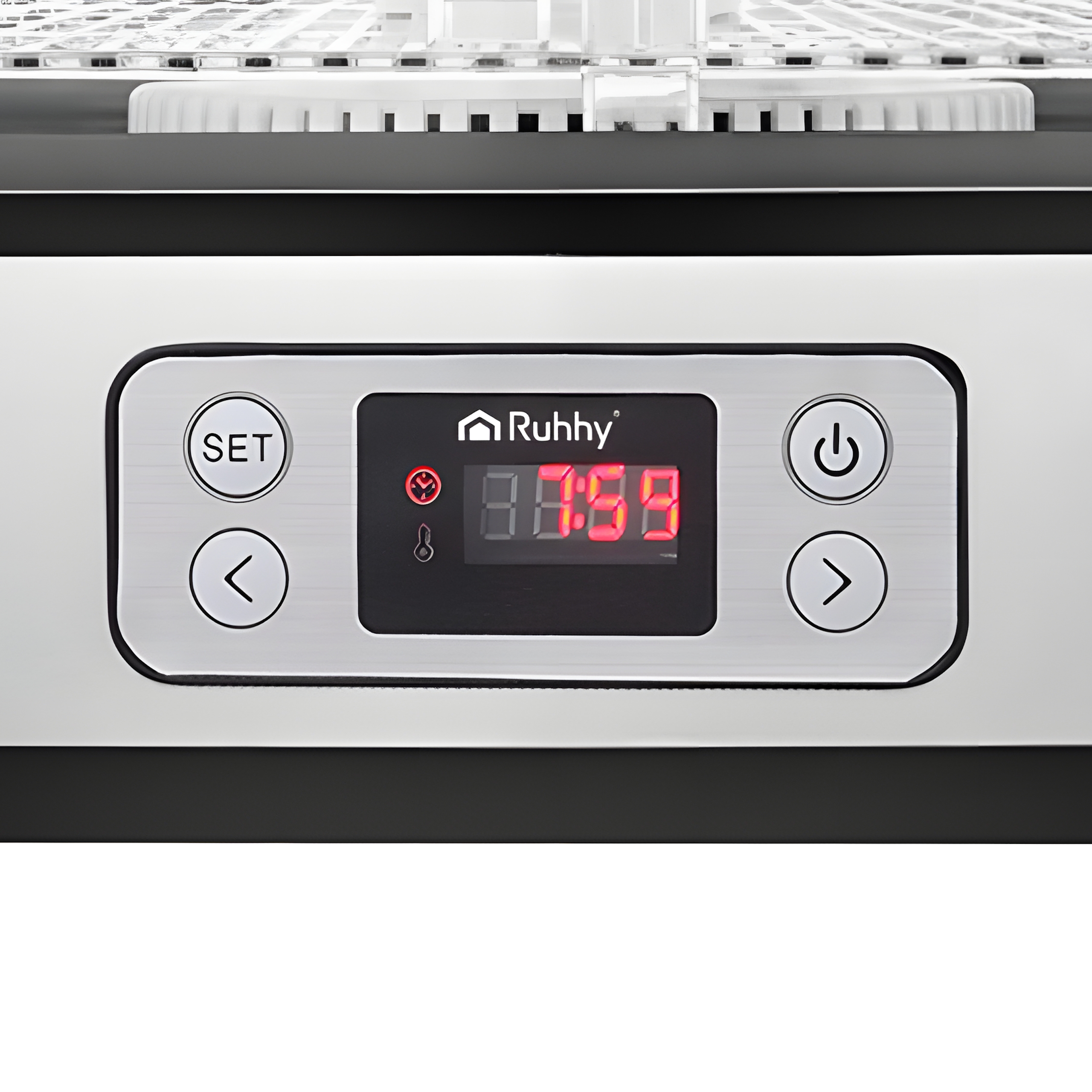 Wyświetlacz LCD z programatorem do 24 godzin sprawia, że suszarka działa nawet przez całą dobę bez konieczności nadzoru. Możesz włączyć ją wieczorem, a rano odebrać gotowe, wysuszone produkty.