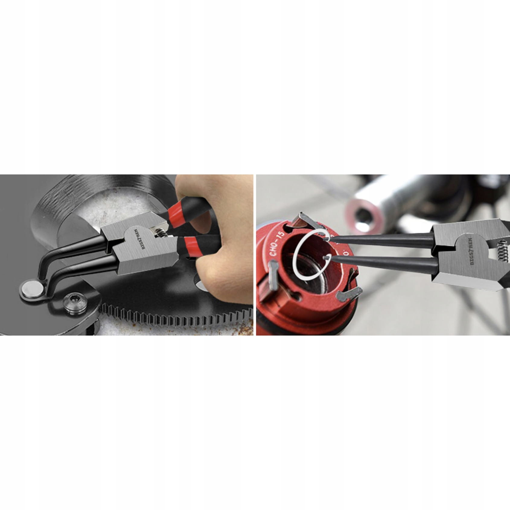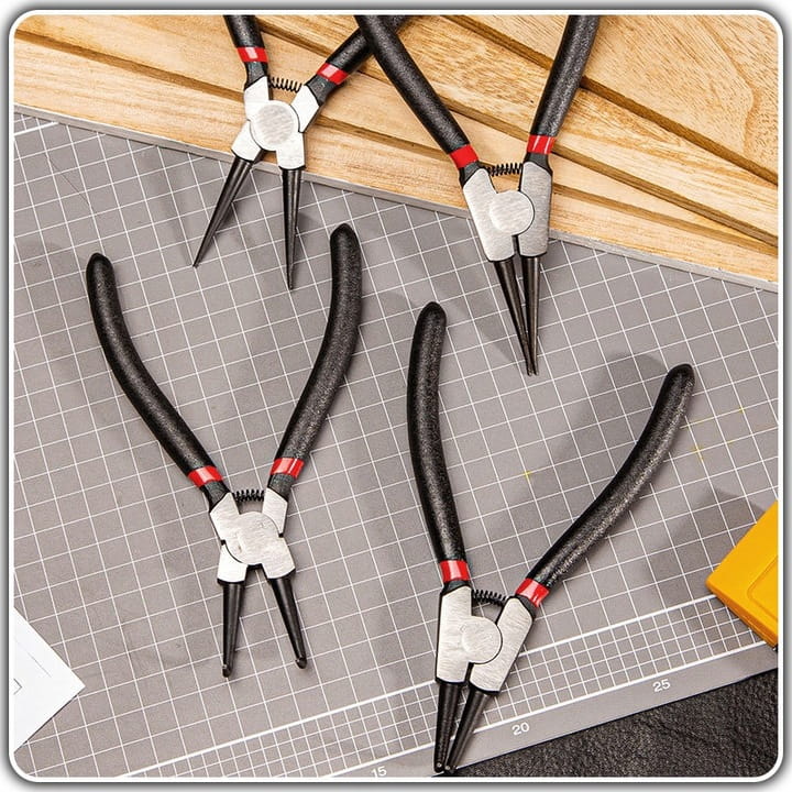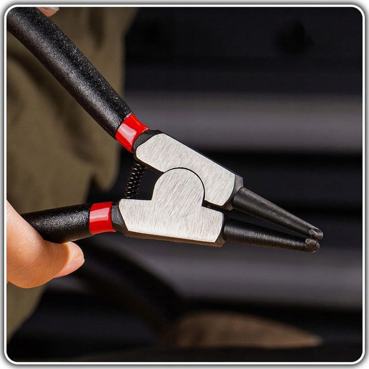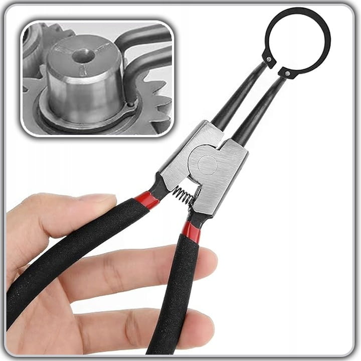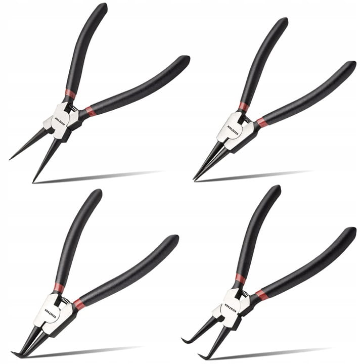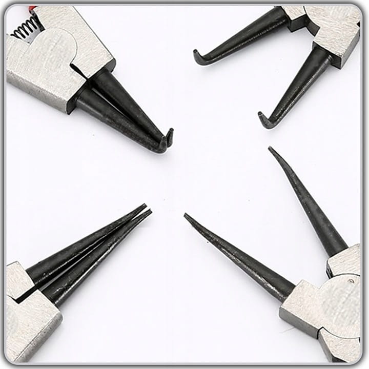 ✅ W zestawie znajdują się szczypce o dwóch różnych końcówkach: proste i zakrzywione, co pozwala na pracę z pierścieniami Seegera w szerokim zakresie wymiarów i w różnych miejscach. Jest to idealne rozwiązanie zarówno dla mechaników, jak i hobbystów.