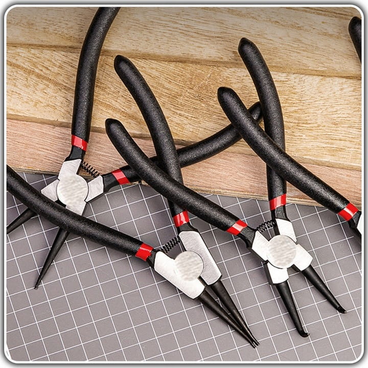 ✅ Regulowany mechanizm śrubowy umożliwia dostosowanie szczypiec do różnych rozmiarów pierścieni, co czyni zestaw uniwersalnym narzędziem, zdolnym sprostać wielu zadaniom w warsztacie.